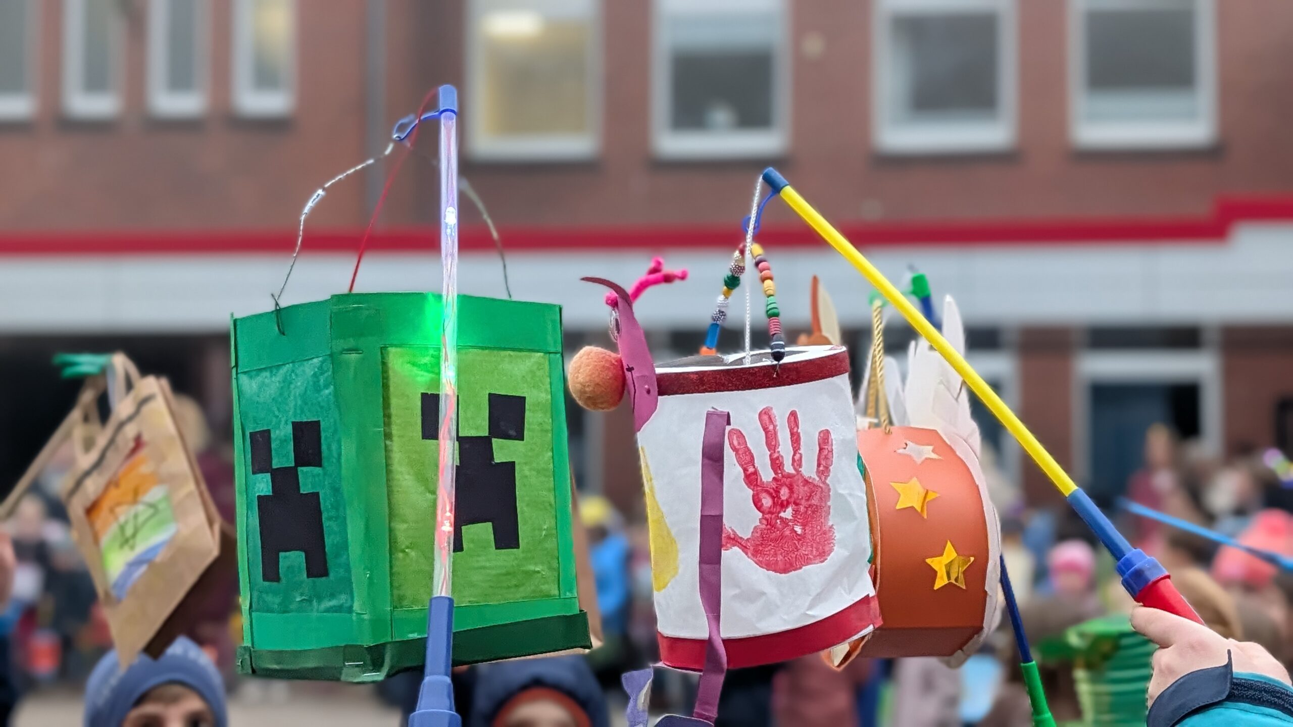 Am Montag, den 10. November 2025, feierten die Kinder der Eichenwallschule das Martini-Fest auf dem Schulhof. Gemeinsam sangen sie Laternenlieder mit Gitarrenbegleitung, während ihre selbstgebastelten Laternen bunt leuchteten.
